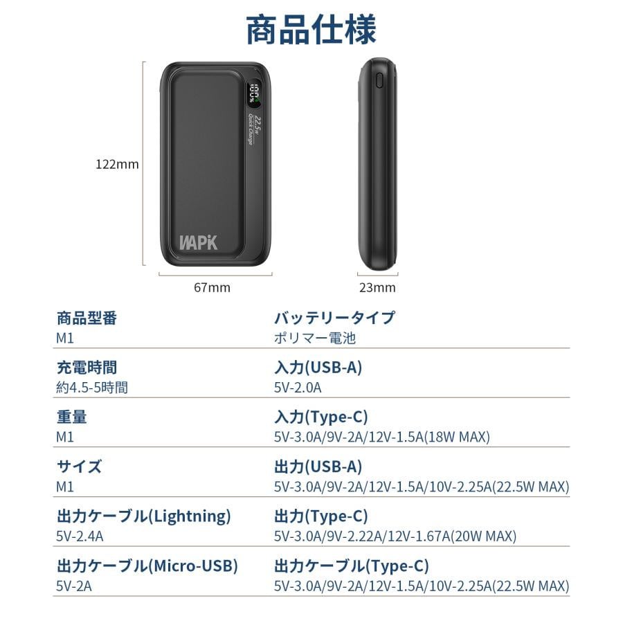 入力/出力:DC 5V2.0A